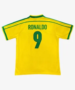 Camisa Infantil Retrô Seleção Brasileira 1998 Home Com Escudo – Ronaldo