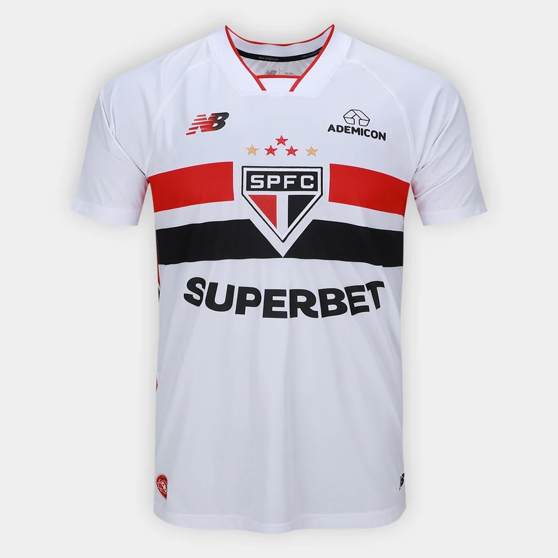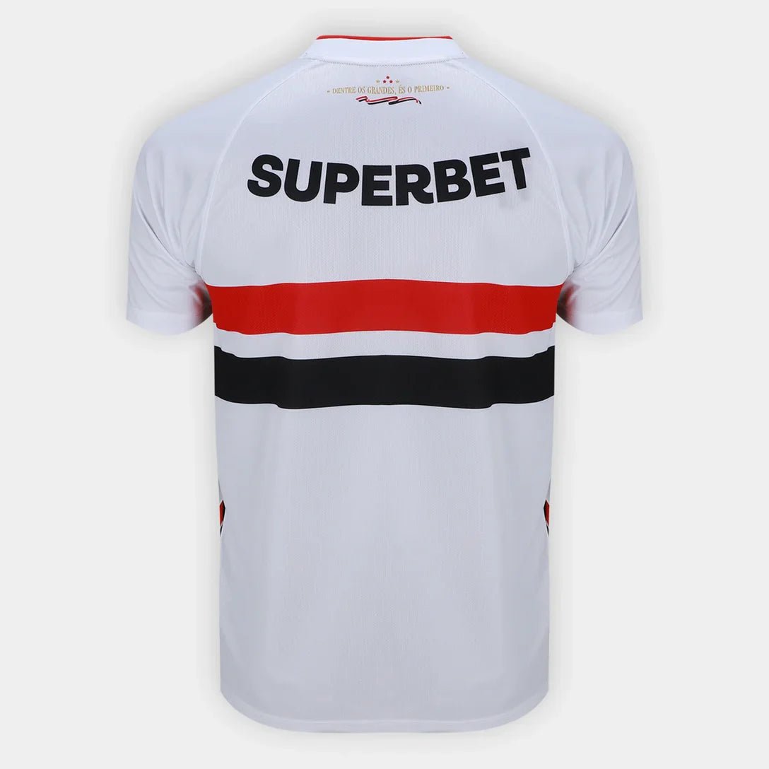 A nova camisa titular do São Paulo para a temporada 2024/25 resgata a essência do Tricolor com elegância e fidelidade às suas raízes. Com a tradicional faixa horizontal em vermelho, branco e preto, o manto homenageia os momentos históricos vividos no Morumbi, agora em uma leitura moderna com gola polo e detalhes refinados. Ideal para o torcedor que carrega o clube no peito com orgulho e estilo.