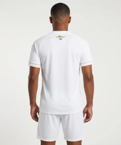 - Visual branco com faixa tricolor central e gola polo personalizada